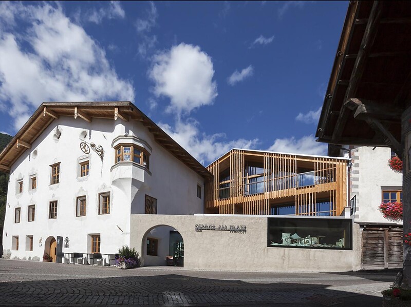 Unser Feinkostladen Ansitz zum Löwen befindet sich direkt am Hauptplatz von Burgeis.