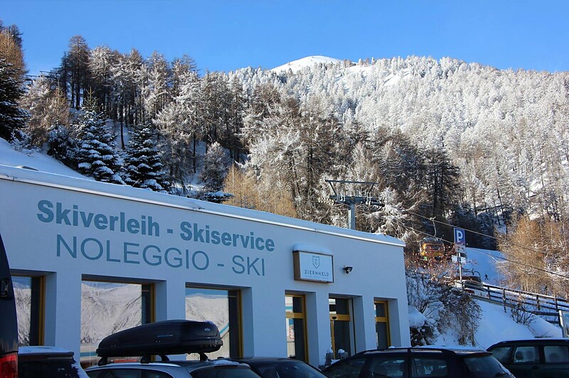Sportgeschäft, Skiverleih, Skidepo direkt an der Talstation des Skigebiets Watles